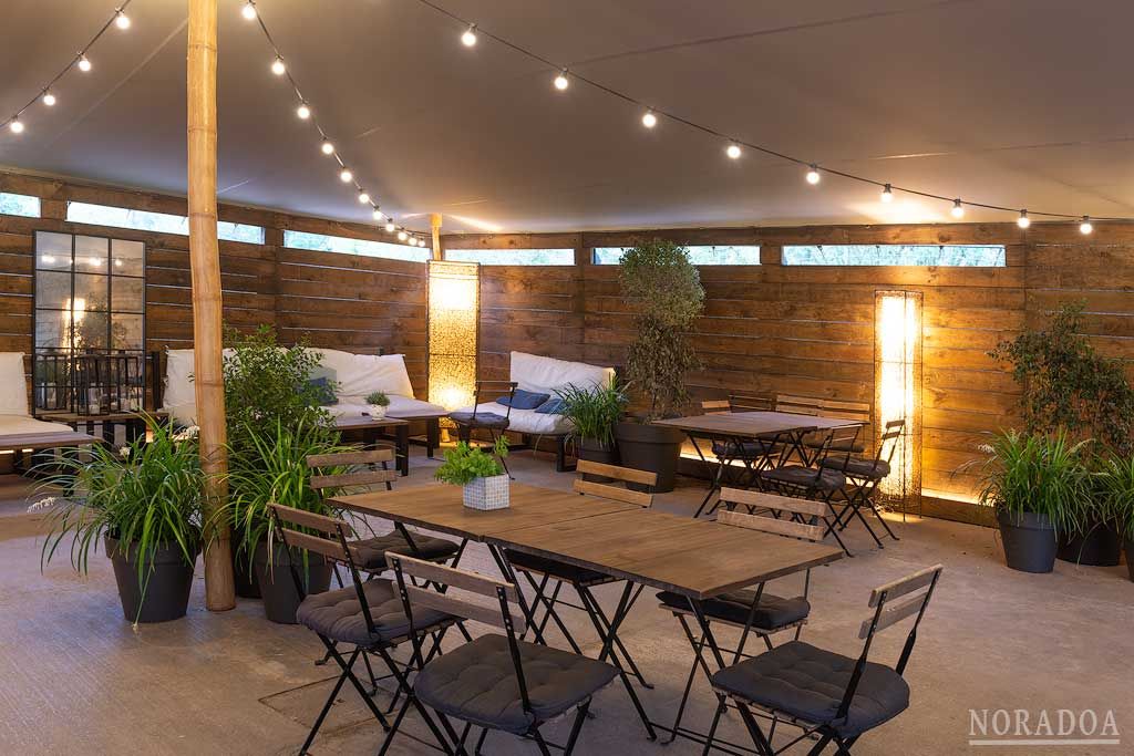 Me encantó la carpa junto al edificio principal del hotel donde pudimos tomar unas cervezas justo antes de cenar en el mismo Molí Blanc Hotel.
