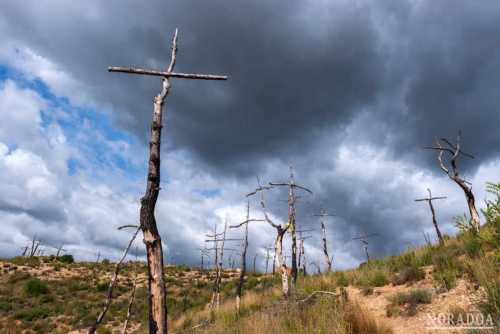 El Bosque de las Cruces nació a raíz de un incendio en el verano de 2015 en el municipio de Òdena, y justo un año después se plantó la cruz número 1293, que coincide con el número de hectáreas quemadas en ese incendio.